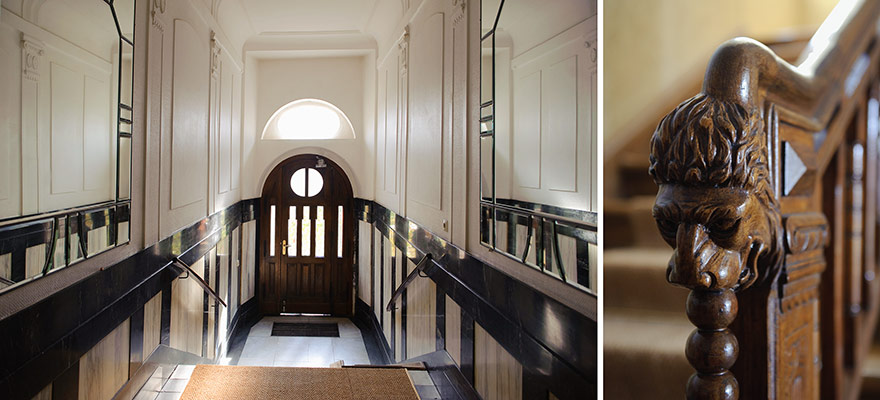 Haus Rabe, mit Skulpturen des Malers Oskar Schlemmer